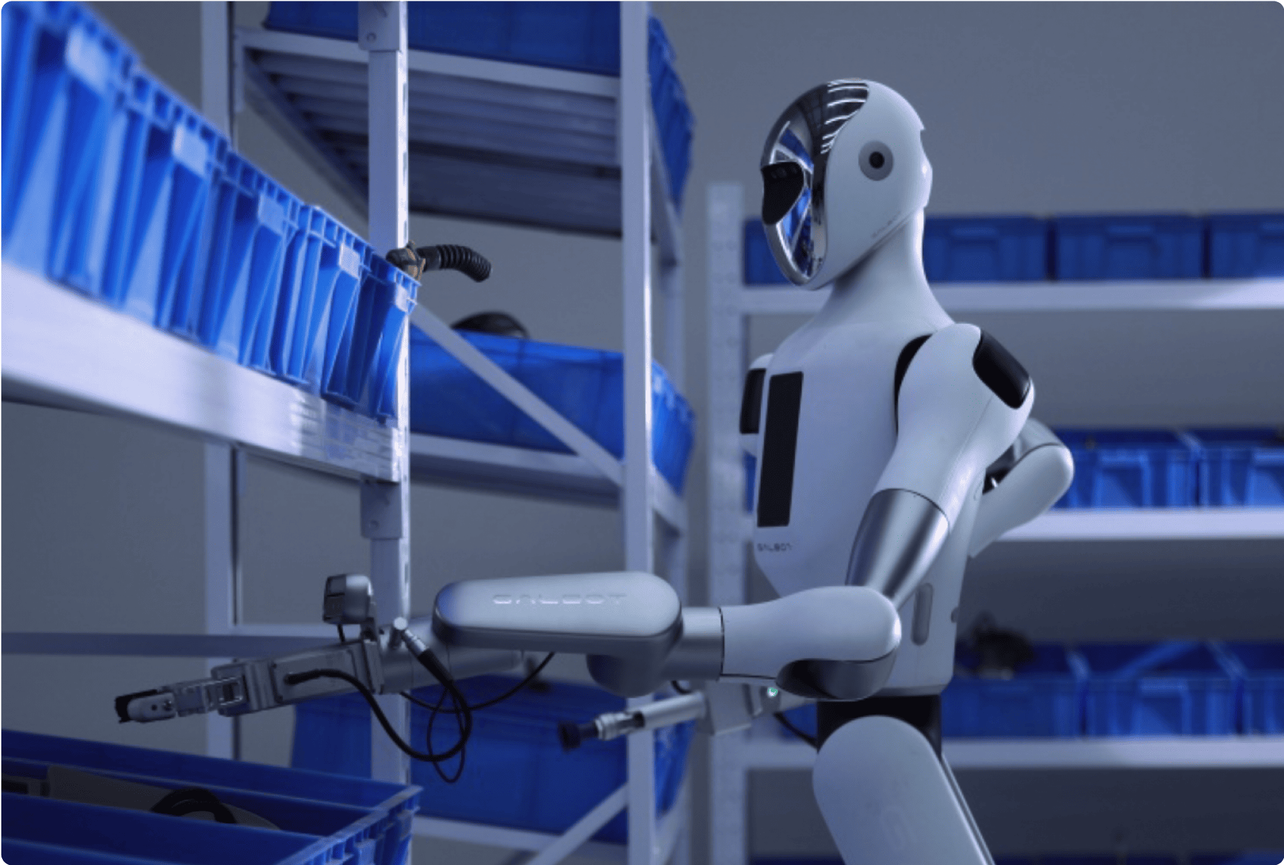 BigHandzでは、エンボディドAI(Embodied AI)を中核とするGALBOT®のフィジカルAI技術に着目し、 ロボットプラットフォームおよび知能化技術を前提として、日本市場における実運用を想定した活用シナリオの検討を進めています。 ロボット本体・AIモデル・制御システムを一体で設計する思想に基づき、人の生活空間・業務空間に自然に入り込み、人と協調しながら作業を担うAIロボティクスの実装を目指します。 プロダクトの概要(GALBOT®技術を前提) GALBOT®のフィジカルAI技術を前提とした本プロダクトは、人の作業領域を広くカバーする作業レンジと、360°全方向移動による柔軟な動線対応を特長としています。粉塵や湿気などの環境要因を考慮した安定稼働設計に加え、AI駆動によるエンドツーエンド制御を採用することで、実環境における高い再現性と信頼性を実現します。また、長時間稼働を前提とした運用設計により、継続的な業務支援を可能としています。